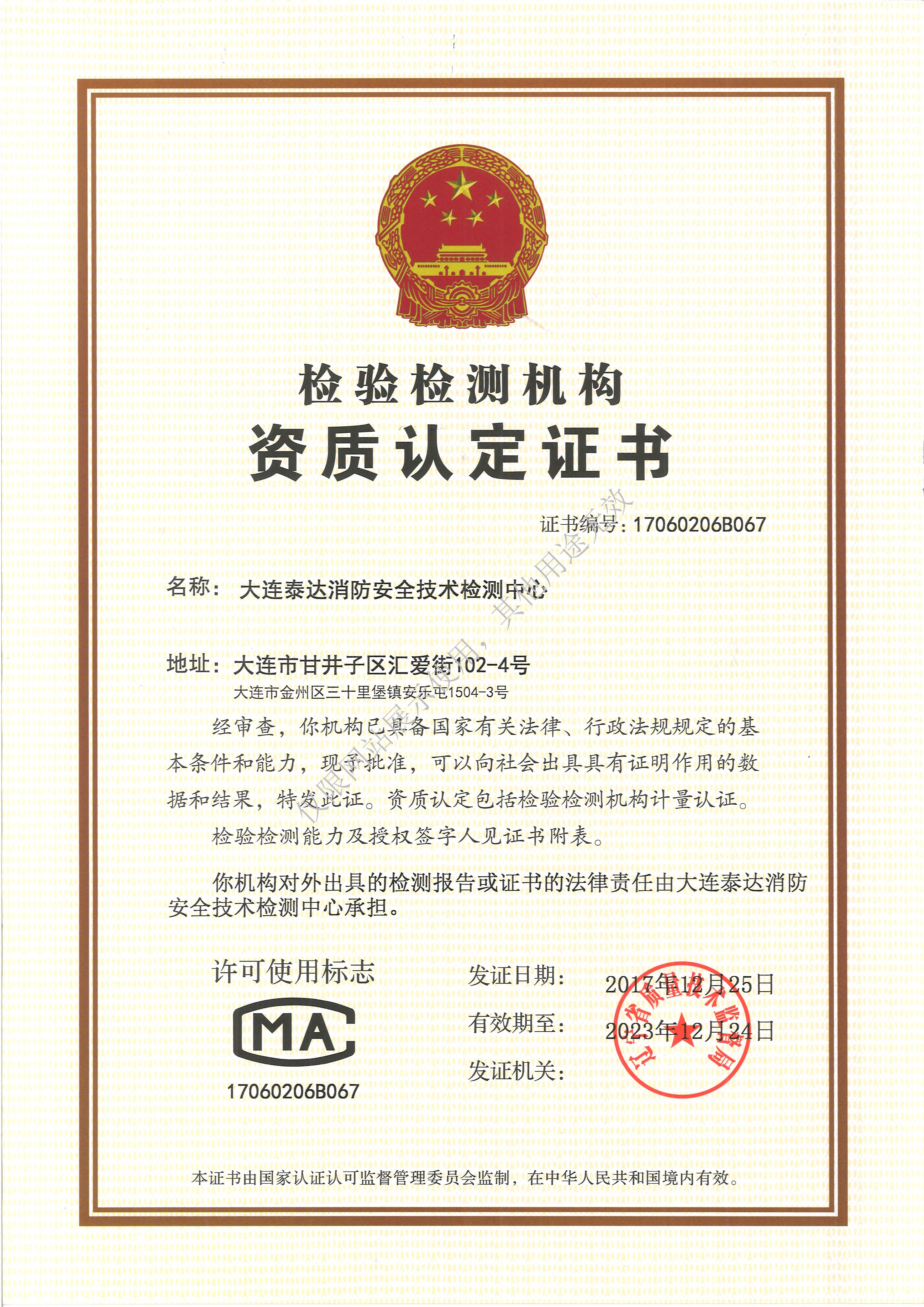 大連泰達(dá)消防安全技術(shù)檢測中心